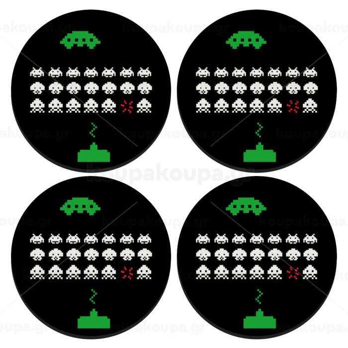Space invaders, ΣΕΤ 4 Σουβέρ ξύλινα στρογγυλά (9cm)