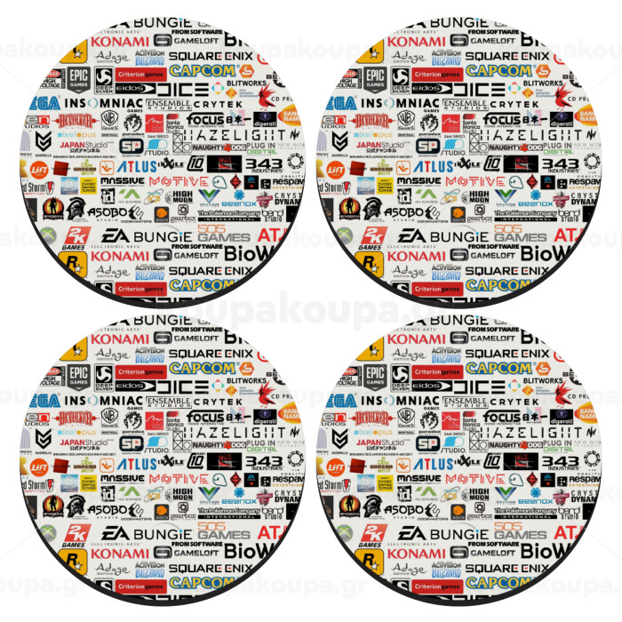 Video Game Studio Logos, ΣΕΤ 4 Σουβέρ ξύλινα στρογγυλά (9cm)
