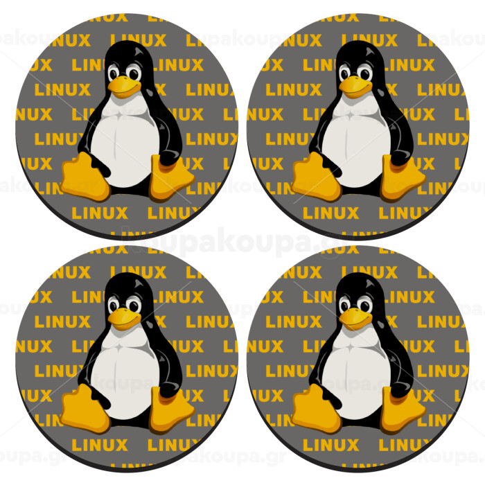 Linux, ΣΕΤ 4 Σουβέρ ξύλινα στρογγυλά (9cm)