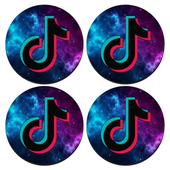 tiktok space galaxy, ΣΕΤ 4 Σουβέρ ξύλινα στρογγυλά (9cm)