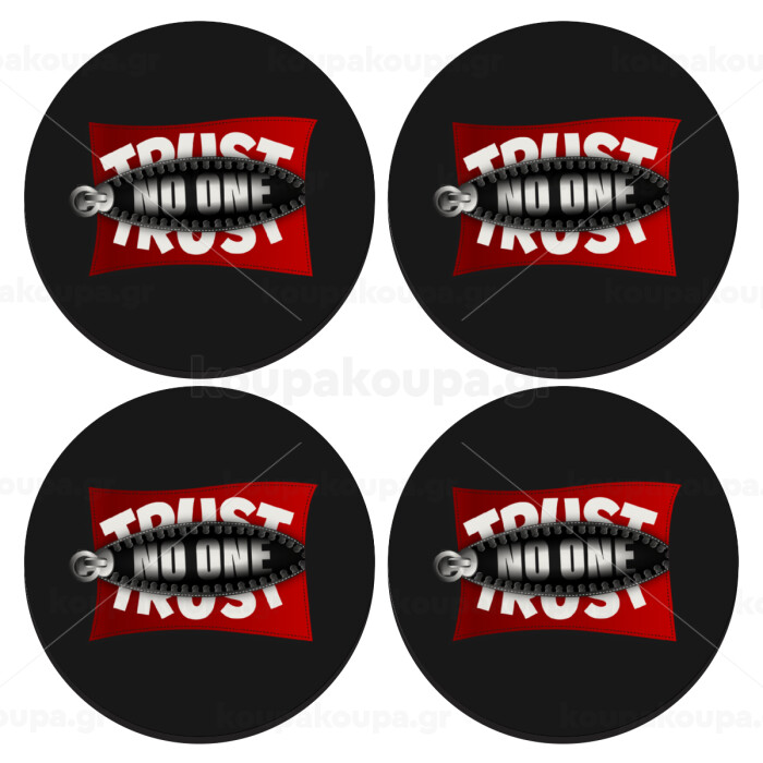 Trust no one... (zipper), ΣΕΤ 4 Σουβέρ ξύλινα στρογγυλά (9cm)