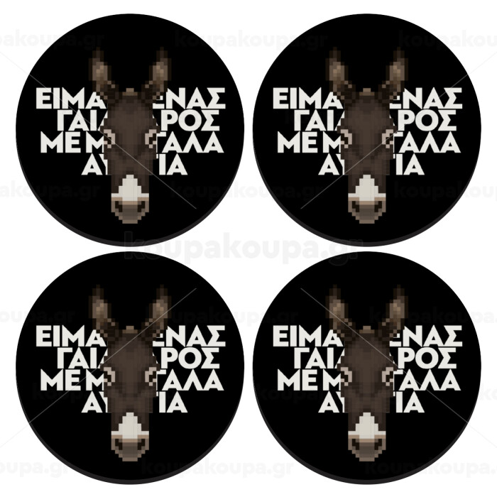 Είμαι ένας γάιδαρος με μεγάλα αυτιά., ΣΕΤ 4 Σουβέρ ξύλινα στρογγυλά (9cm)