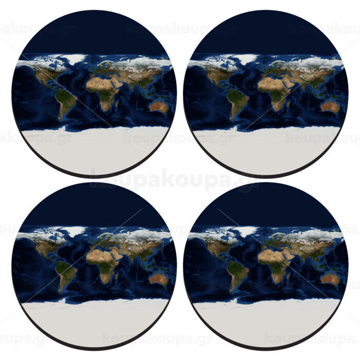 Earth map, ΣΕΤ 4 Σουβέρ ξύλινα στρογγυλά (9cm)