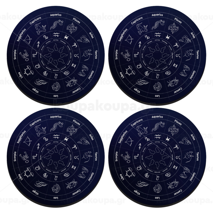 Ζωδιακός κύκλος, ΣΕΤ 4 Σουβέρ ξύλινα στρογγυλά (9cm)