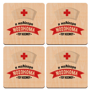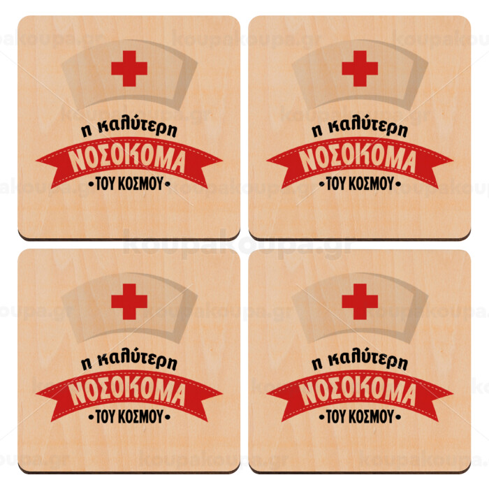 Η καλύτερη νοσοκόμα του κόσμου!!!, ΣΕΤ x4 Σουβέρ ξύλινα τετράγωνα plywood (9cm)