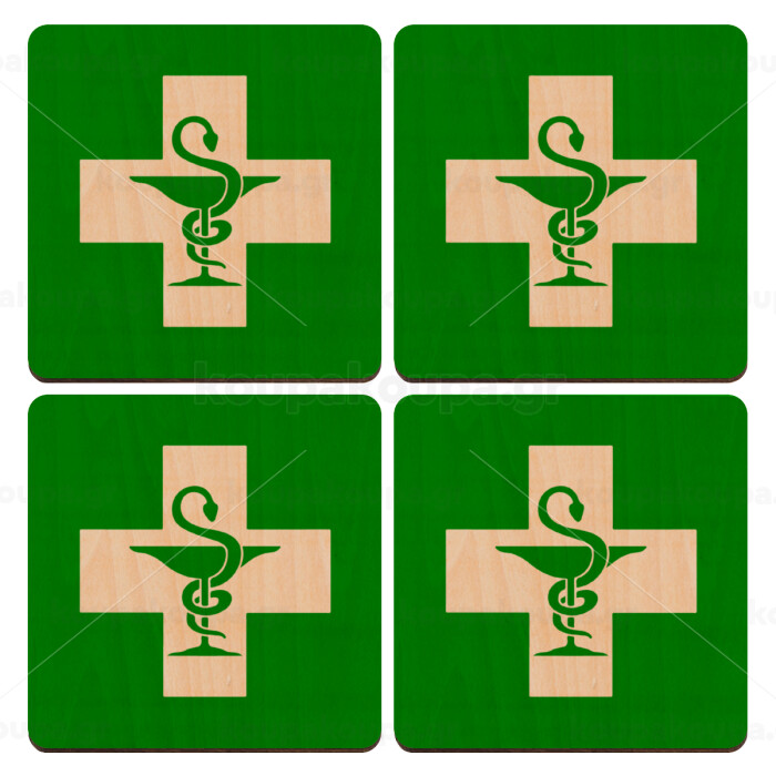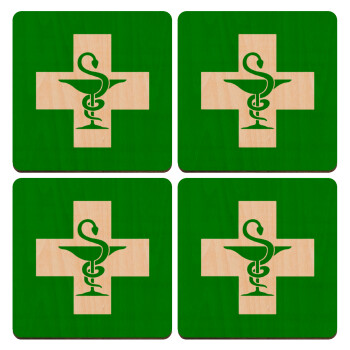Φαρμακείο, ΣΕΤ x4 Σουβέρ ξύλινα τετράγωνα plywood (9cm)