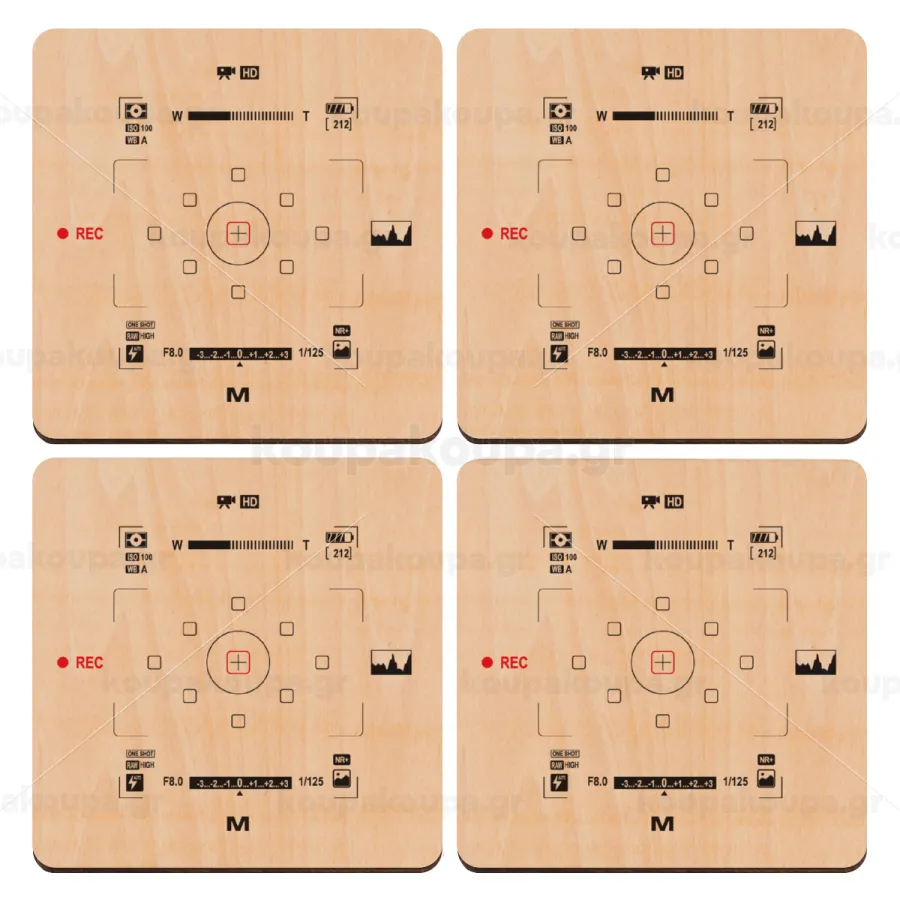Camera viewfinder, ΣΕΤ x4 Σουβέρ ξύλινα τετράγωνα plywood (9cm)