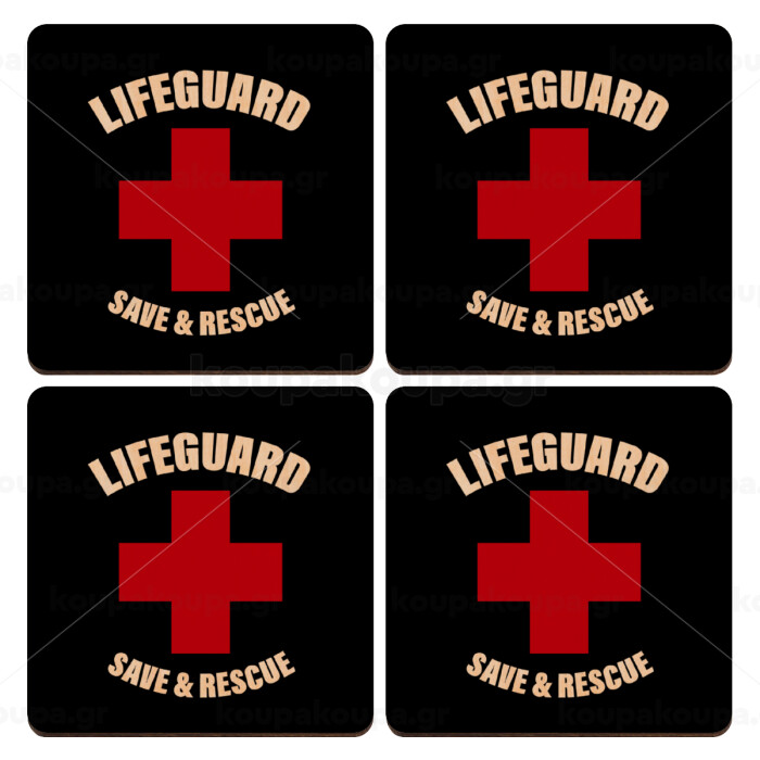 Lifeguard Save & Rescue, ΣΕΤ x4 Σουβέρ ξύλινα τετράγωνα plywood (9cm)