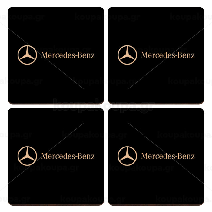 Mercedes small logo, ΣΕΤ x4 Σουβέρ ξύλινα τετράγωνα plywood (9cm)