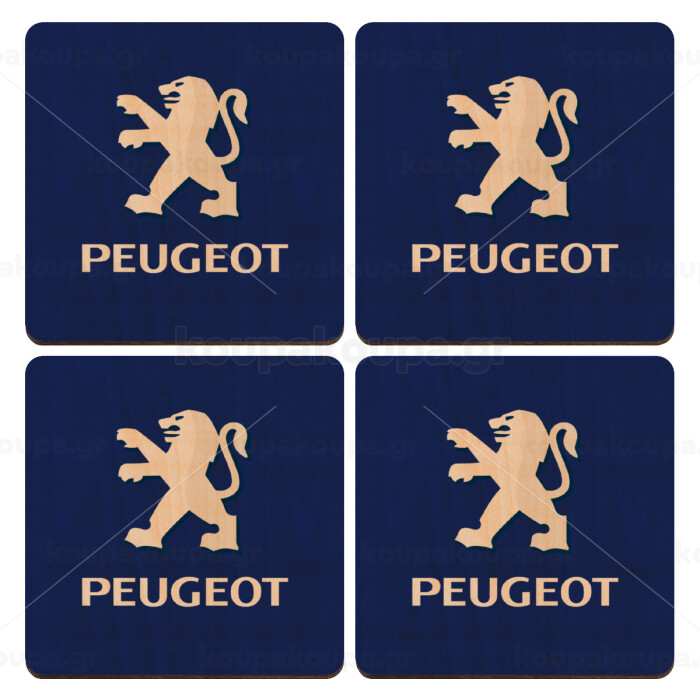 Peugeot, ΣΕΤ x4 Σουβέρ ξύλινα τετράγωνα plywood (9cm)