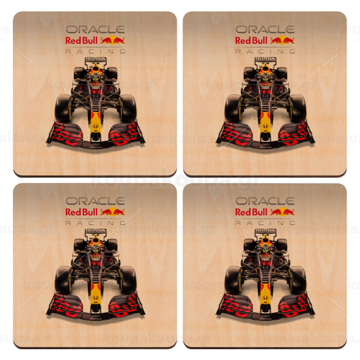 Redbull Racing Team F1, ΣΕΤ x4 Σουβέρ ξύλινα τετράγωνα plywood (9cm)