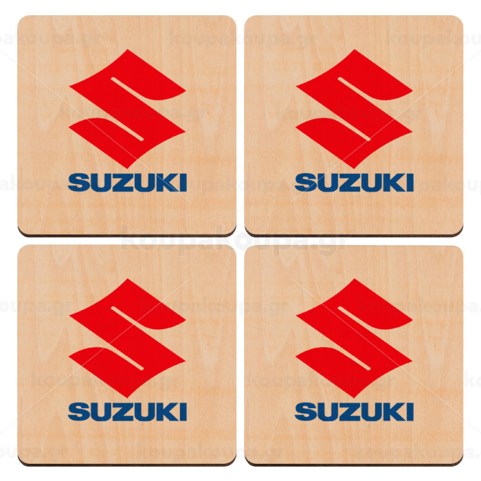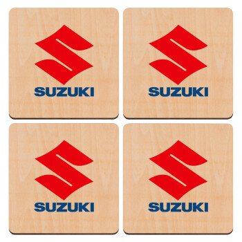 SUZUKI, ΣΕΤ x4 Σουβέρ ξύλινα τετράγωνα plywood (9cm)