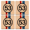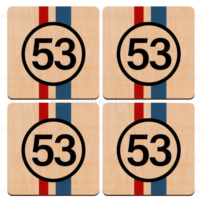 VW Herbie 53, ΣΕΤ x4 Σουβέρ ξύλινα τετράγωνα plywood (9cm)