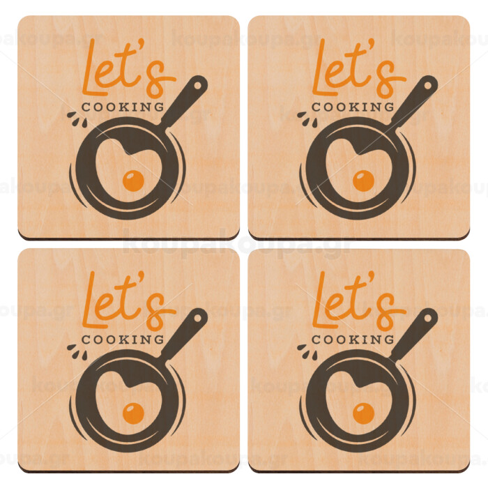 Let's cooking, ΣΕΤ x4 Σουβέρ ξύλινα τετράγωνα plywood (9cm)