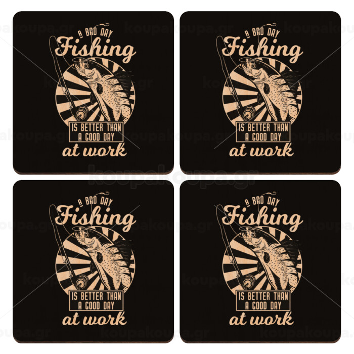 A bad day FISHING is better than a good day at work, ΣΕΤ x4 Σουβέρ ξύλινα τετράγωνα plywood (9cm)