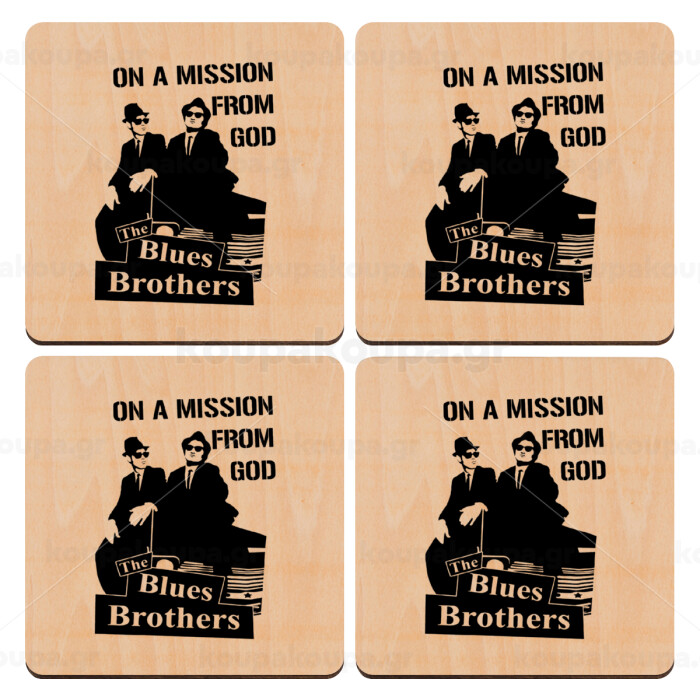 Blues brothers on a mission from God, ΣΕΤ x4 Σουβέρ ξύλινα τετράγωνα plywood (9cm)
