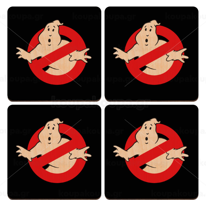 The Ghostbusters, ΣΕΤ x4 Σουβέρ ξύλινα τετράγωνα plywood (9cm)