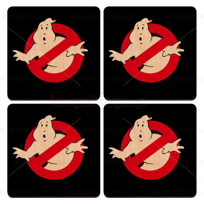 Ghostbusters, ΣΕΤ x4 Σουβέρ ξύλινα τετράγωνα plywood (9cm)