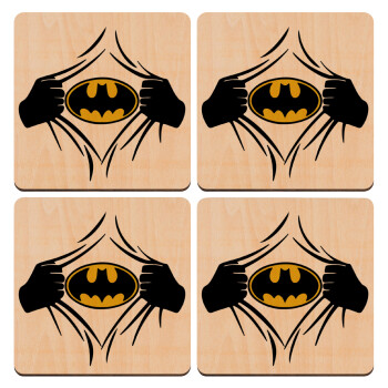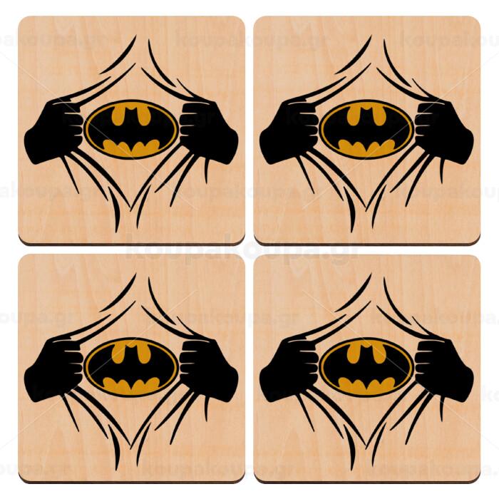 Hero batman, ΣΕΤ x4 Σουβέρ ξύλινα τετράγωνα plywood (9cm)