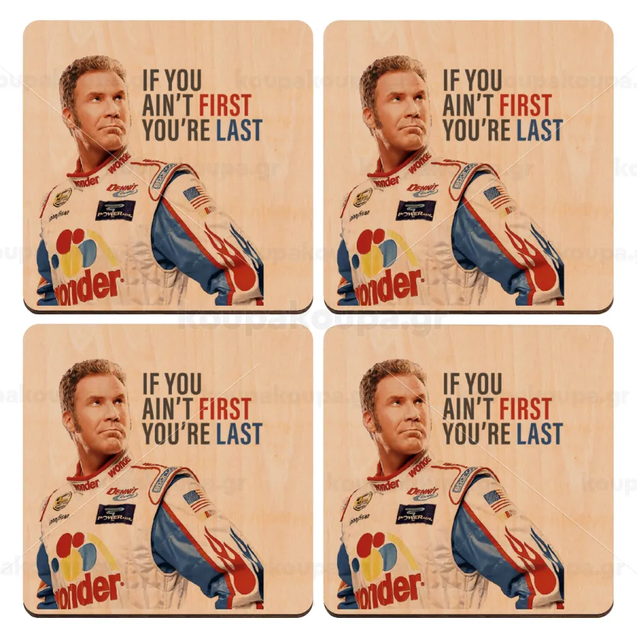If You Ain't First You're Last Ricky Bobby, Talladega Nights, ΣΕΤ x4 Σουβέρ ξύλινα τετράγωνα plywood (9cm)