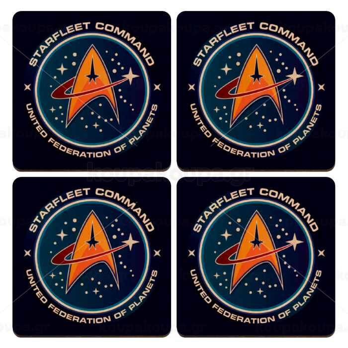 Starfleet command, ΣΕΤ x4 Σουβέρ ξύλινα τετράγωνα plywood (9cm)