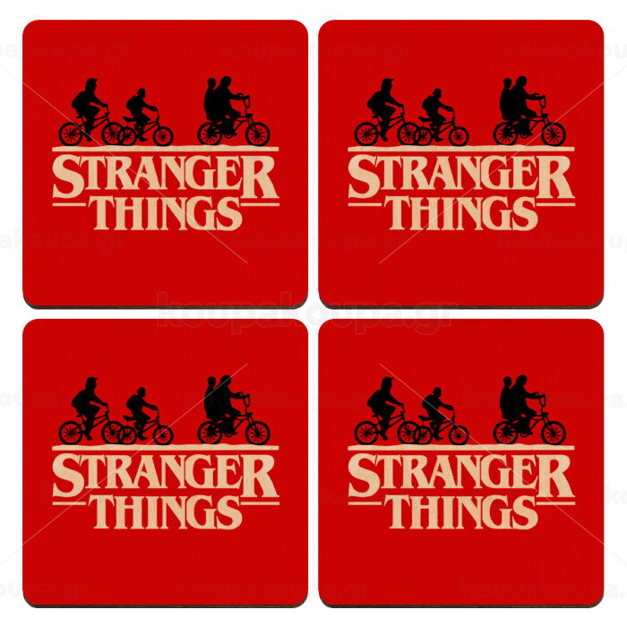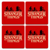 Stranger Things red, ΣΕΤ x4 Σουβέρ ξύλινα τετράγωνα plywood (9cm)