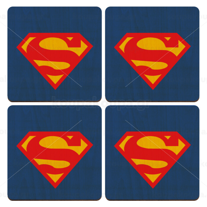 Superman, ΣΕΤ x4 Σουβέρ ξύλινα τετράγωνα plywood (9cm)