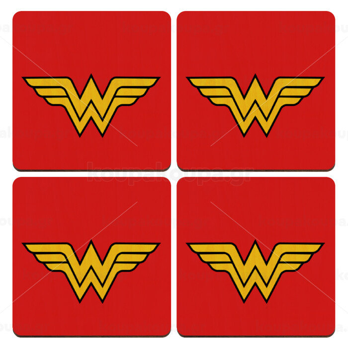 Wonder woman, ΣΕΤ x4 Σουβέρ ξύλινα τετράγωνα plywood (9cm)