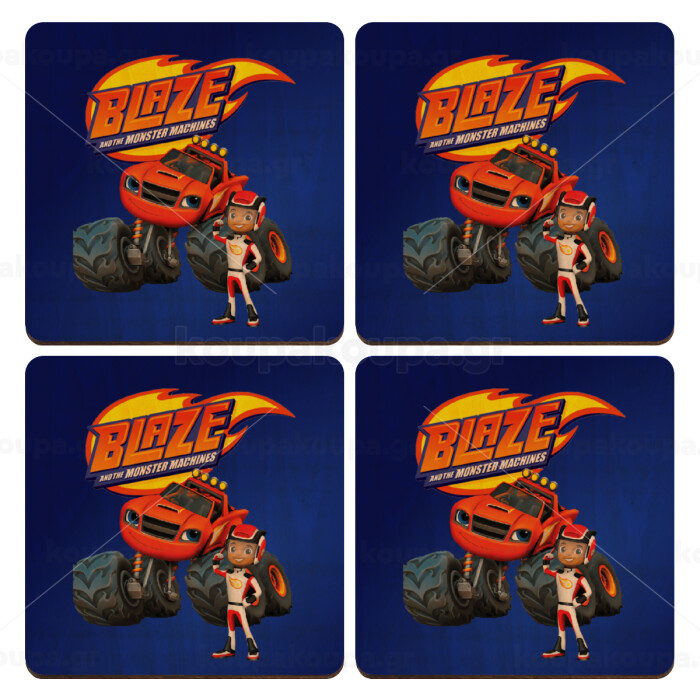 Ο Μπλέιζ και οι Φίλοι του, ΣΕΤ x4 Σουβέρ ξύλινα τετράγωνα plywood (9cm)