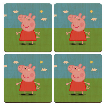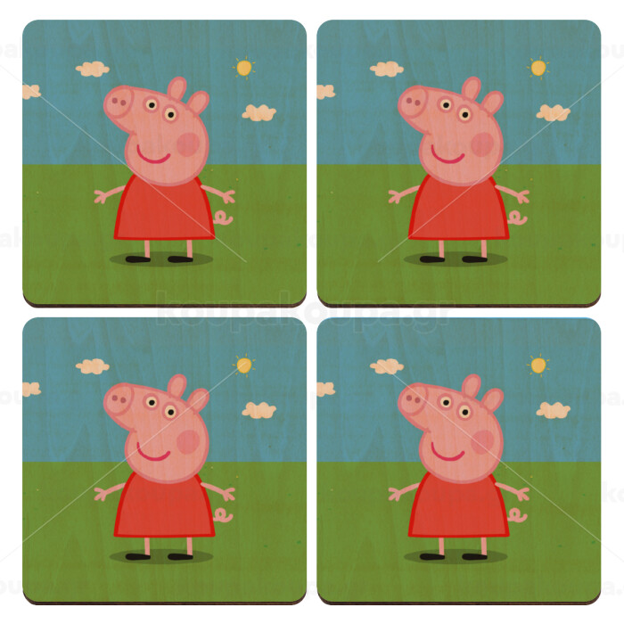 Πέππα το γουρουνάκι, ΣΕΤ x4 Σουβέρ ξύλινα τετράγωνα plywood (9cm)