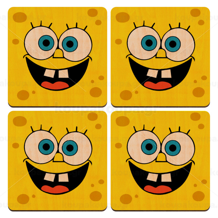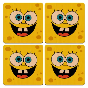 Μπομπ, ΣΕΤ x4 Σουβέρ ξύλινα τετράγωνα plywood (9cm)