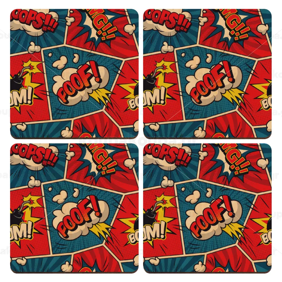 Comic boom!, ΣΕΤ x4 Σουβέρ ξύλινα τετράγωνα plywood (9cm)