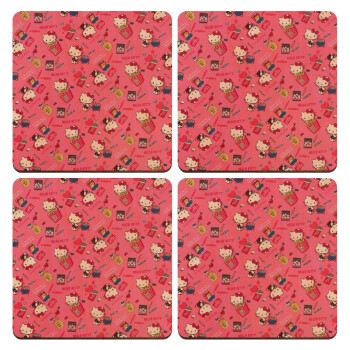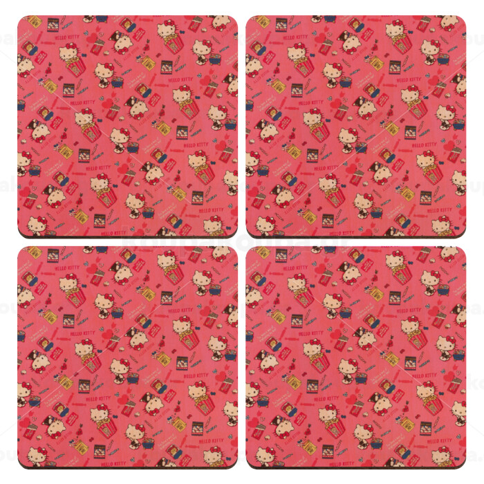 Hello kitty, ΣΕΤ x4 Σουβέρ ξύλινα τετράγωνα plywood (9cm)