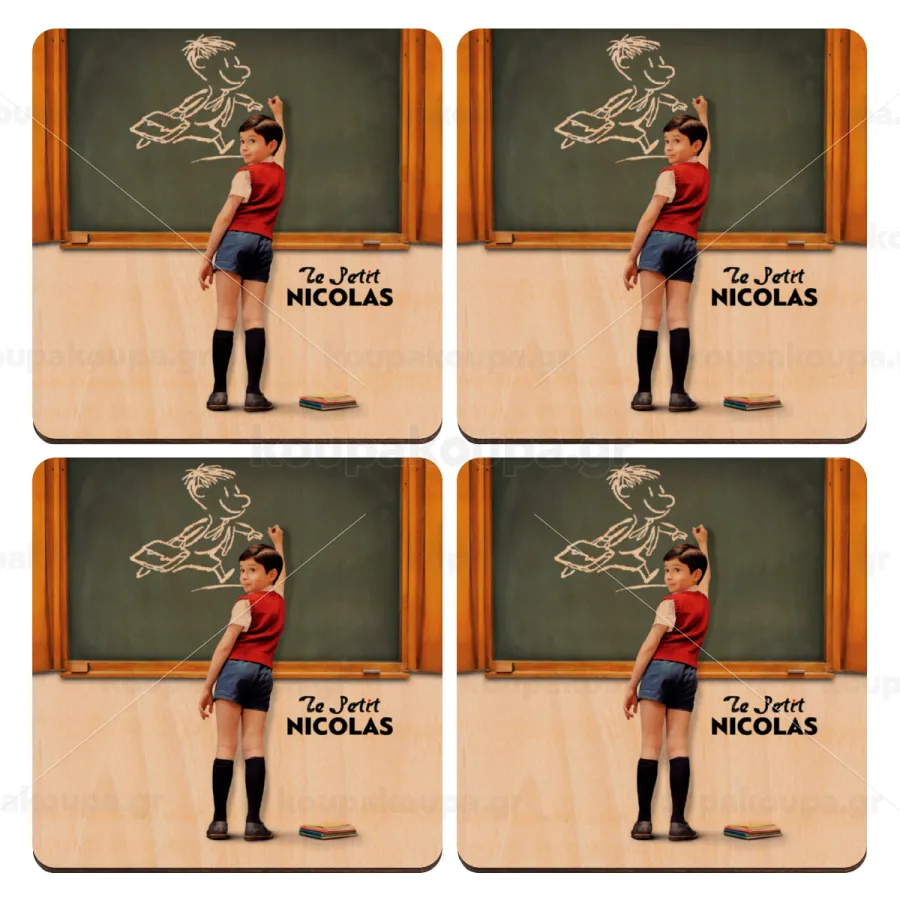 Le Petit Nicolas, ΣΕΤ x4 Σουβέρ ξύλινα τετράγωνα plywood (9cm)