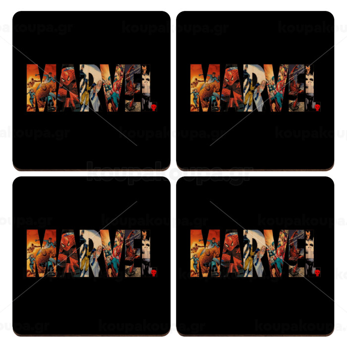 MARVEL Black, ΣΕΤ x4 Σουβέρ ξύλινα τετράγωνα plywood (9cm)