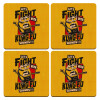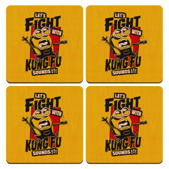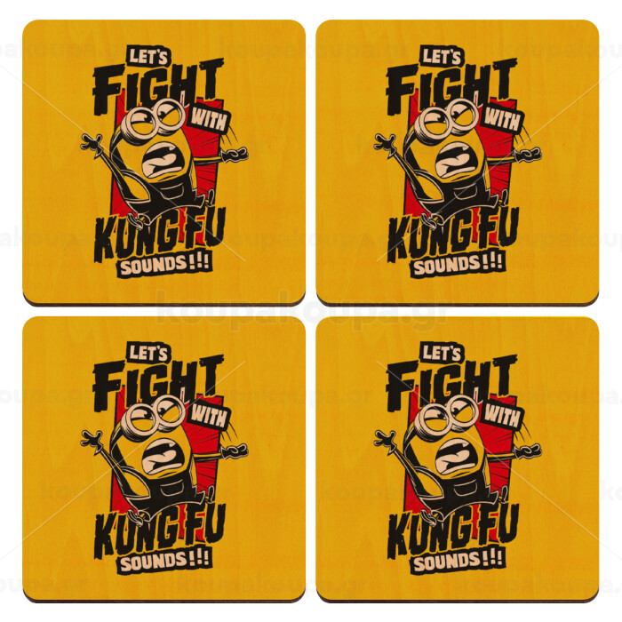 Minions Let's fight with kung fu sounds, ΣΕΤ x4 Σουβέρ ξύλινα τετράγωνα plywood (9cm)