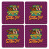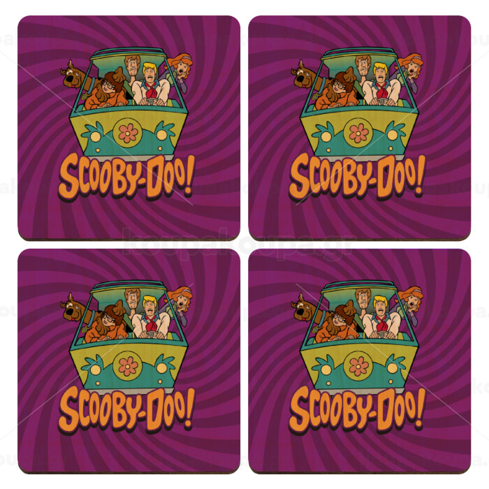 Scooby Doo car, ΣΕΤ x4 Σουβέρ ξύλινα τετράγωνα plywood (9cm)