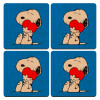 Snoopy, ΣΕΤ x4 Σουβέρ ξύλινα τετράγωνα plywood (9cm)