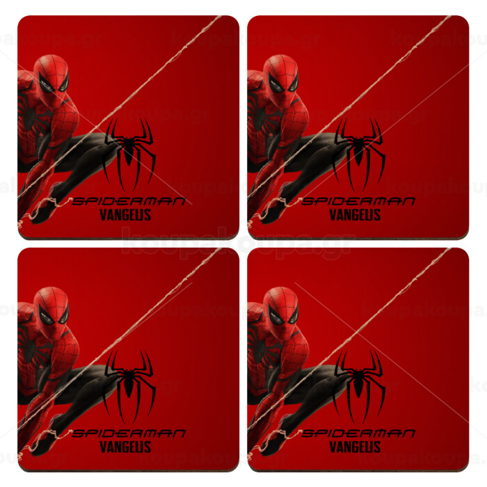 Spiderman, ΣΕΤ x4 Σουβέρ ξύλινα τετράγωνα plywood (9cm)