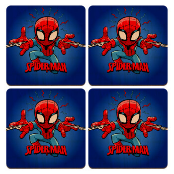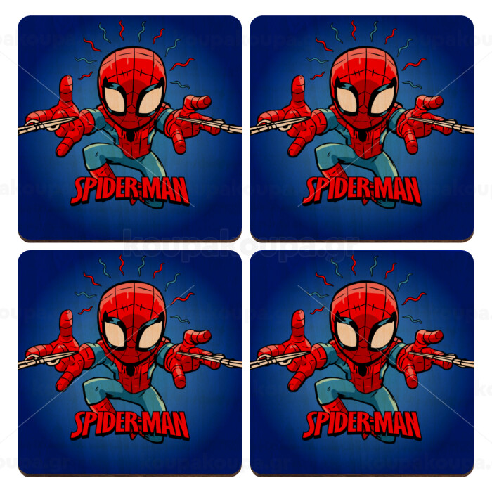 Spiderman flying, ΣΕΤ x4 Σουβέρ ξύλινα τετράγωνα plywood (9cm)