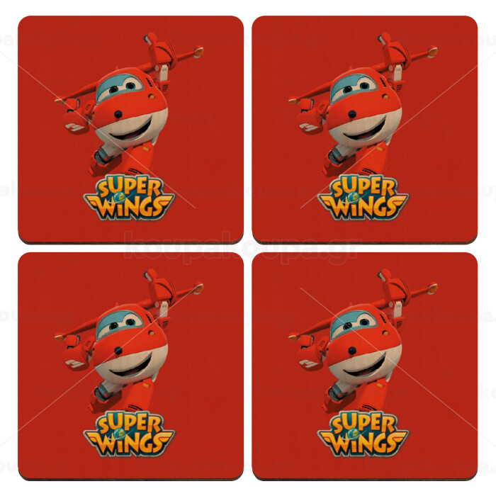 Super Wings, ΣΕΤ x4 Σουβέρ ξύλινα τετράγωνα plywood (9cm)