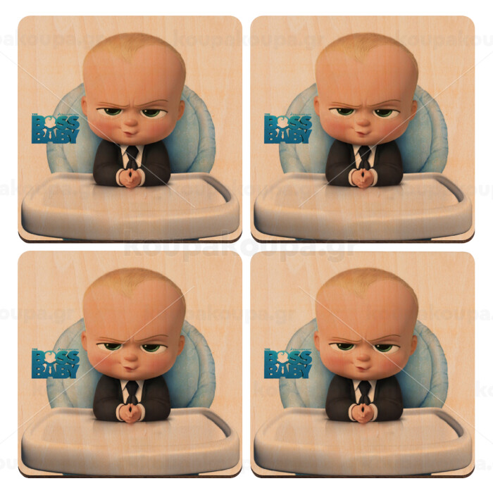 The boss baby, ΣΕΤ x4 Σουβέρ ξύλινα τετράγωνα plywood (9cm)