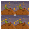 Ο μικρός πρίγκιπας planet, ΣΕΤ x4 Σουβέρ ξύλινα τετράγωνα plywood (9cm)