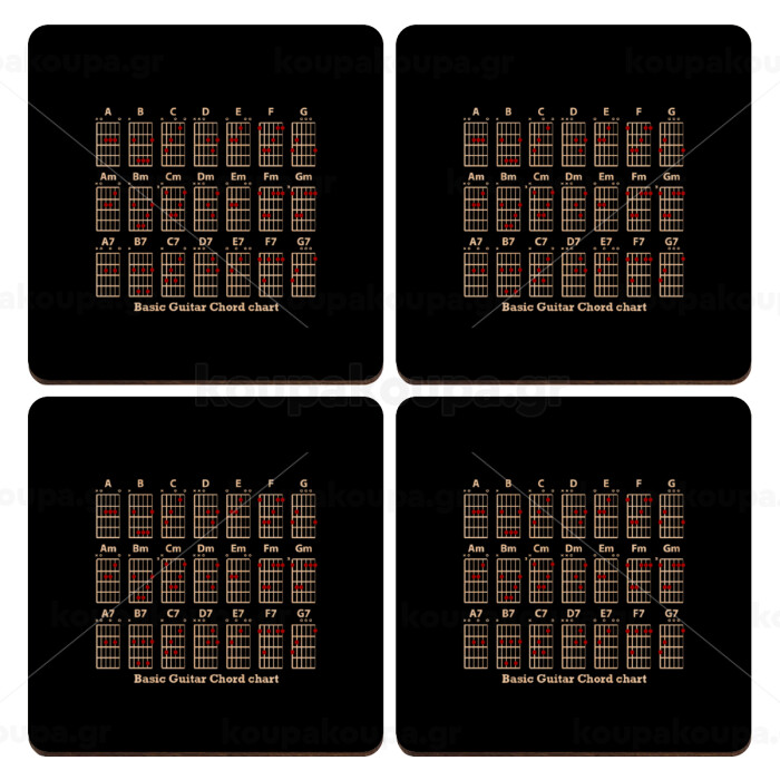 Συγχορδίες κιθάρας, ΣΕΤ x4 Σουβέρ ξύλινα τετράγωνα plywood (9cm)