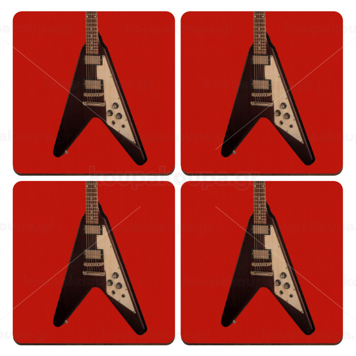 Guitar flying V, ΣΕΤ x4 Σουβέρ ξύλινα τετράγωνα plywood (9cm)