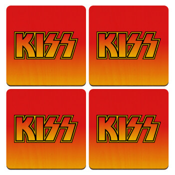 KISS, ΣΕΤ x4 Σουβέρ ξύλινα τετράγωνα plywood (9cm)