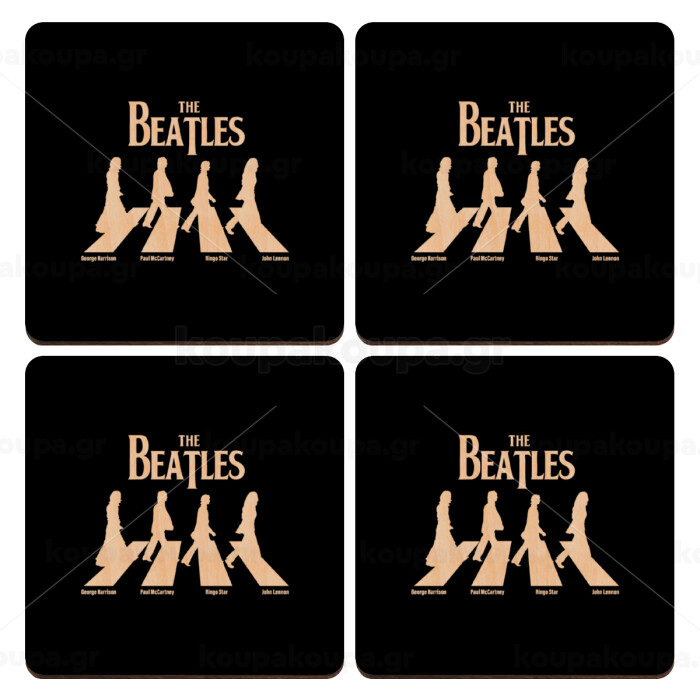 The Beatles, Abbey Road, ΣΕΤ x4 Σουβέρ ξύλινα τετράγωνα plywood (9cm)