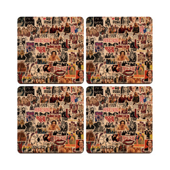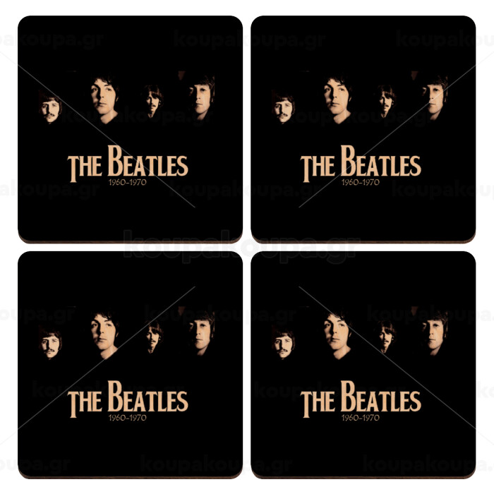 The Beatles, ΣΕΤ x4 Σουβέρ ξύλινα τετράγωνα plywood (9cm)