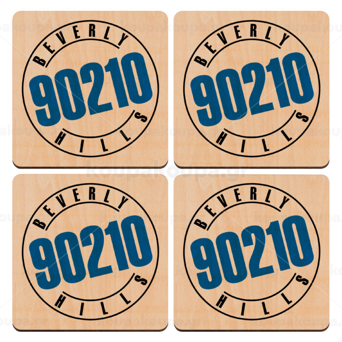 Beverly Hills, 90210, ΣΕΤ x4 Σουβέρ ξύλινα τετράγωνα plywood (9cm)