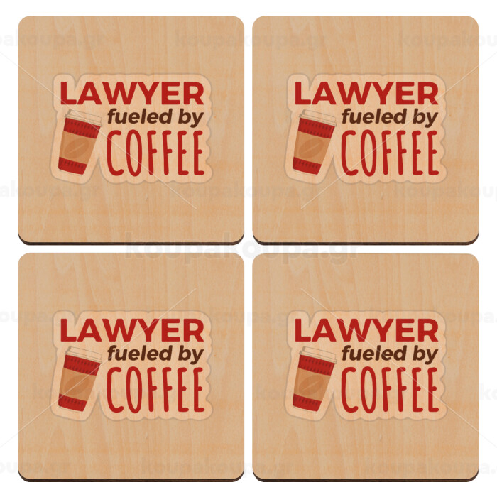 Lawyer fueled by coffee, ΣΕΤ x4 Σουβέρ ξύλινα τετράγωνα plywood (9cm)